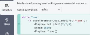 Der Calliope mini hat einen Lagesensor, der abgefragt werden kann. Je nach Lage können dann Aktionen ausgelöst werden.