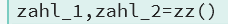Die erste Funktion bestimmt zwei verschiedene Zufallszahlen zwischen 0 und 9 und gibt die beiden Werte zurück. Der Aufruf der Funktion erfolt im Hauptprogramm über